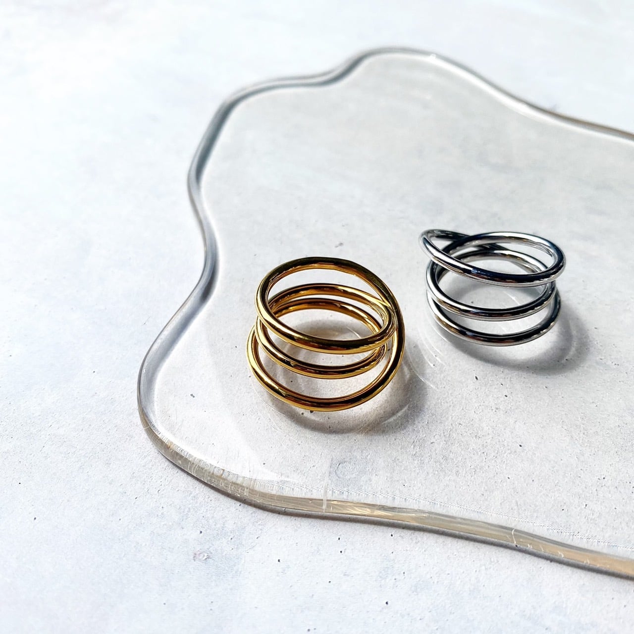 3重になっているデザインリング。